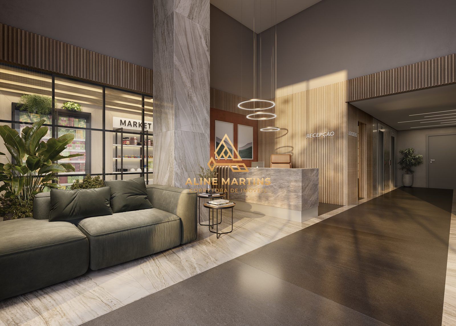Será entregue com fechadura digital, piso laminado resistente à água, acabamento em gesso, persianas motorizadas nas janelas e paredes em drywall com atenuante acústico. O banheiro será entregue com box, bancada e metais.